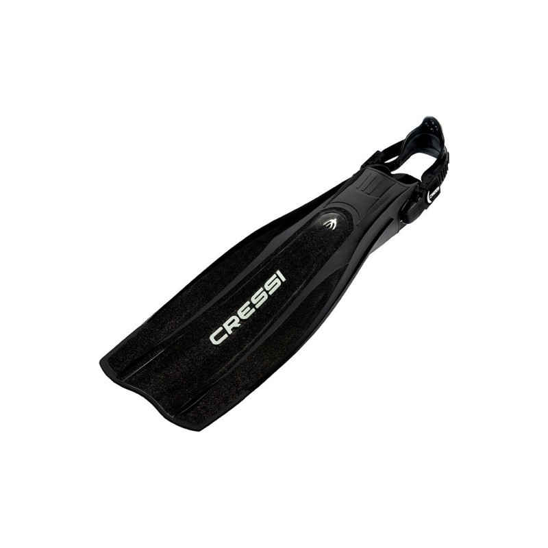 A highly advanced design for this fin that is moulded from two materials with very different characteristics: a strong polypropylene for the blade and soft elastomers (thermo rubber) for the foot and protective inserts. The result is an extremely light and well-balanced fin, of average size, with surprising reaction time and a formidable thrust. The side stringers that extend all along the blade and two flaps situated along the end of the blade itself make the fin very directional. The blade originates from the upper part of the foot pocket, with a 20% increase in useful surface area compared to a traditional fin of the same length. The foot pocket is computer designed and guarantees ideal transmission of the leg-fin thrust. The lightness and perfect balance of the materials, together with the extremely modern design, make Rondine Pro Light a generous fin that provides exuberant performance without too much physical effort. These fins are perfect both for beginners and for professionals and are very common amongst instructors and technical divers.