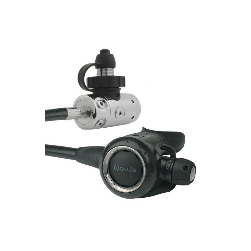 Hollis 212 DC1 N-Swivel Din Maxflex <p>First Stage:</p> <ul><li>Over-Balanced Diaphragm Regulator Design Provides Progressively Greater Intermediate Pressure with Increased Depth and Gas Density</li> <li>Superior Gas Delivery Under Most Extreme Conditions</li> <li>Dual Diaphragm Design: Completely Seals Internal Components from Environment Environmental Sealing Prevents Icing</li> <li>5 Low Pressure Ports (LP) with 3/8" Threads LP Port Swivel Turret Allows Ideal LP Hose Routing Easier Hose Routing for Back Mounted Double, Side Mount Cylinders or Recreational Divers 2 High Pressure</li> <li>Port (HP) with 7/16" Threads Material: Marine-Grade Chrome Plated Brass 2 Choices: Yoke or DIN Cylinder Connection Weight: 34.88 oz (989 g)</li> </ul><p>Second Stage:</p> <ul><li>Lightweight ABS/Polycarbonate Housing</li> <li>Patented Silicone Rubber Orthodontic Mouthpiece Mouthpiece Provides Comfort and Reduced Jaw Fatigue</li> <li>Pneumatically Balanced Demand Valve Design</li> <li>Patented Dynamic Adjustment Automatically Maintains Inhalation Effort Dynamic Adjustment: Compensates for Depth Changes</li> <li>Adjustable Venturi System (A.V.S.) AVS: Simple Dive/Pre-Dive Switch</li> <li>Adjust Inhalation Effort AVS: Prevents Free-Flow During Shore Entries or Long Surface Swims All Controls: Easy Grip Controls for Precise Adjustments Even while Wearing Gloves 30" (76.2 cm)</li> <li>3/8" Threaded Maxflex Hose Lghtweight, Flexible, Braided Hose Designed to Outperform and Outlive Traditional Rubber Hoses</li> </ul>